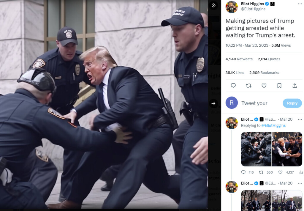 L’autore del deep fake, Eliot Higgins, ha scritto infatti su Twitter: “Creando finte foto di Trump che viene arrestato in attesa che venga davvero arrestato”, ‘autodenunciando’ la falsità delle immagini nel momento stesso in cui ha deciso di mostrare le foto modificate dall’intelligenza artificiale.